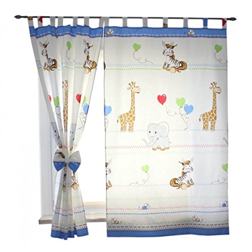 bieten 2er Set Gardinen Kinderzimmer Vorhänge mit Schlaufen und Schleifen 155x95 cm Dekoschal Schlaufenschal , Farbe: Tiere Blau, Größe: ca. 155x95 cm